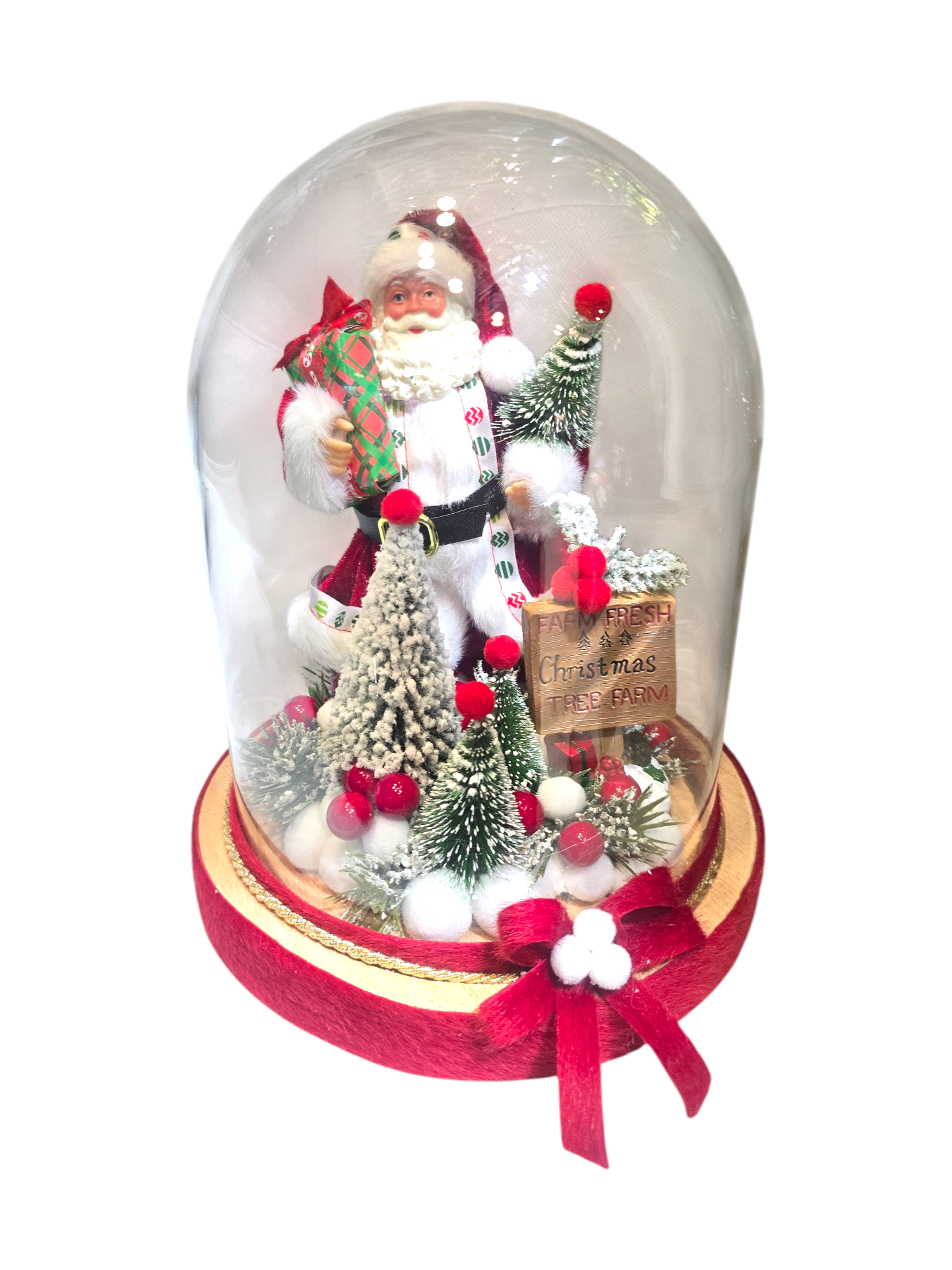 • L’Abbraccio dell’Inverno – Babbo Natale tradizionale rosso e bianco, mini alberi innevati e dettagli rustici “Christmas Tree Farm”.